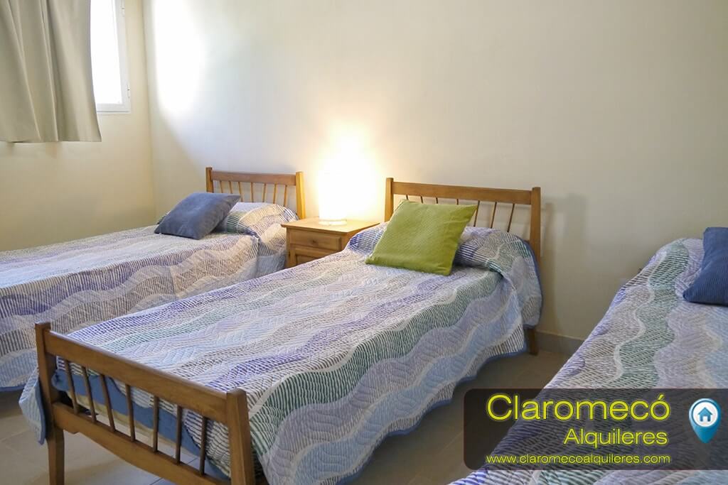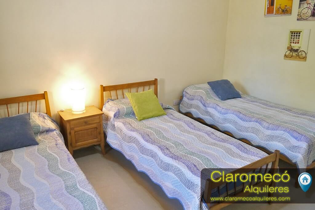 En planta baja dispone de un estar principal con sillones mesa y cocina. En planta alta dispone de dos habitaciones, una con cama matrimonial, placard y ventilador de techo, y otra con tres camas individuales. También en planta alta cuenta con un baño con ducha y una terraza con parrilla, mesa y sillas.