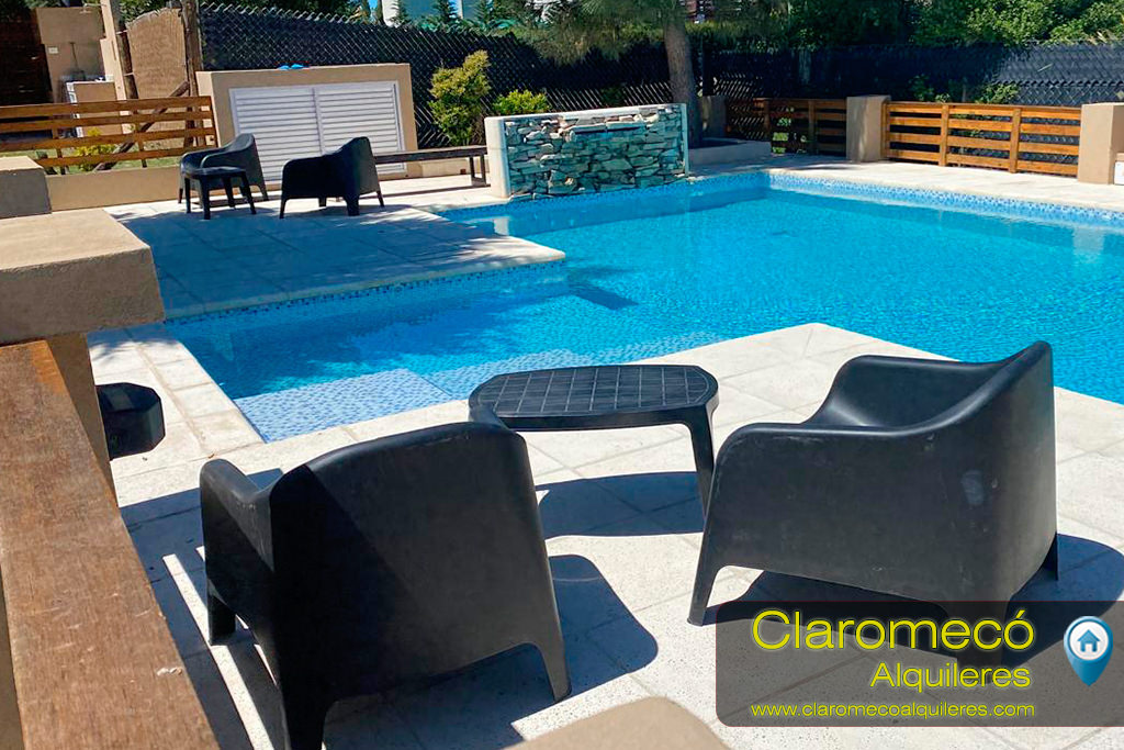Cada uno cuenta, en planta baja, con living-comedor con aire acondicionado frio-calor, cocina y un baño completo, y en planta alta dos habitaciones con aires acondicionados: una con sommier matrimonial y otra con una cama cucheta y dos camas individuales. Además tienen patio cerrado con parrilla, y piscina. La entrada vehicular es techada.