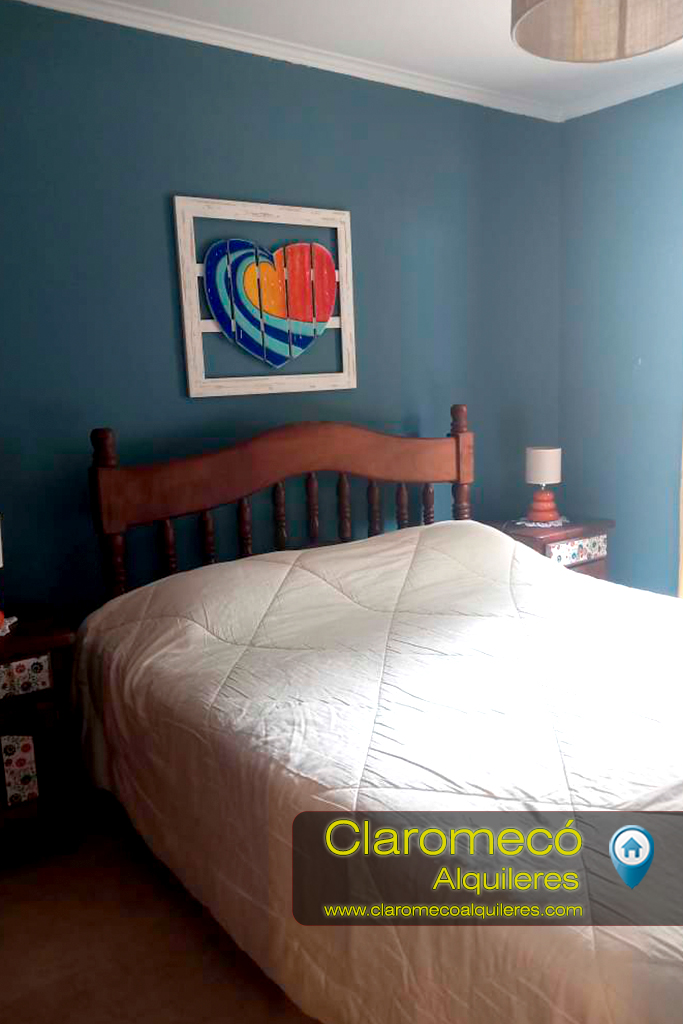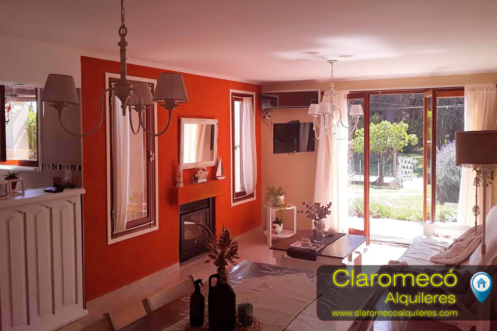 Además, posee dos TV Smart de 32″ con DirecTv, internet WiFi, heladera con freezer, microondas, pava eléctrica, vajilla completa, caloventor, salamandra y cámaras de vigilancia. Cuenta con patio cerrado con parrilla y entrada vehicular cubierta.