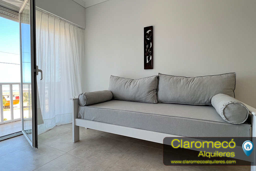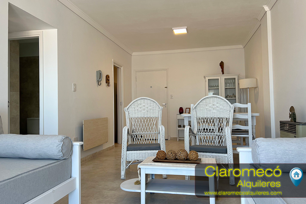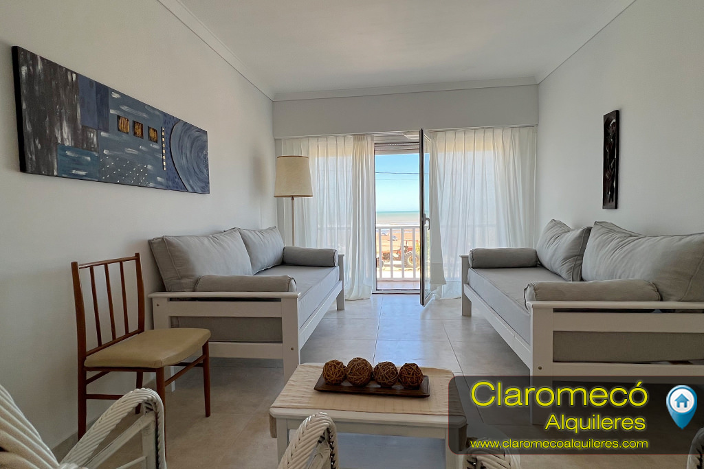 Frente al mar de Claromeco, sobre Avenida Costanera n° 230, entre Av 26 y 24, te ofrecemos nuestro hermoso departamento con capacidad para 4 personas, con vista al mar desde todos los ambientes, balcón, un dormitorio con somier matrimonial y un living/comedor con dos camas individuales, cocina, baño completo con ducha y cochera techada. El mismo se encuentra reciclado a nuevo en 2025.