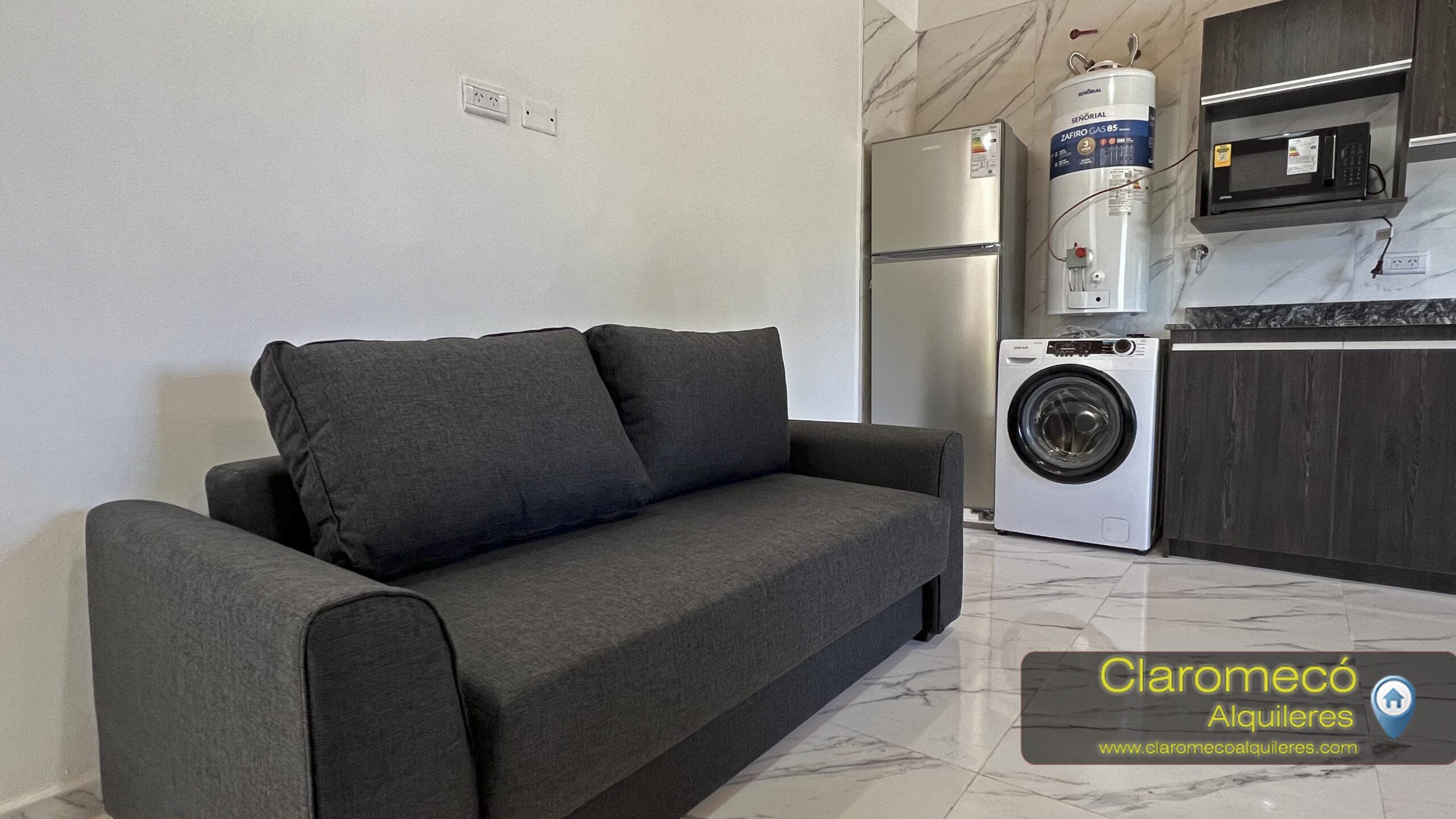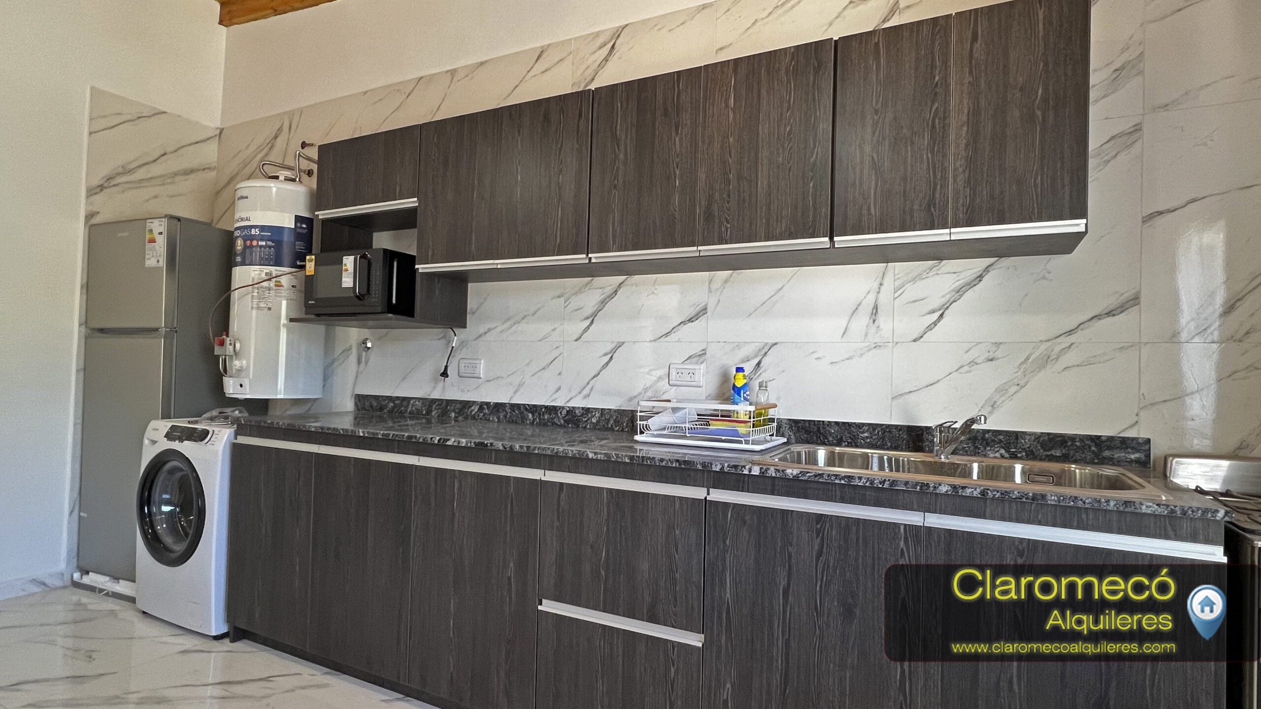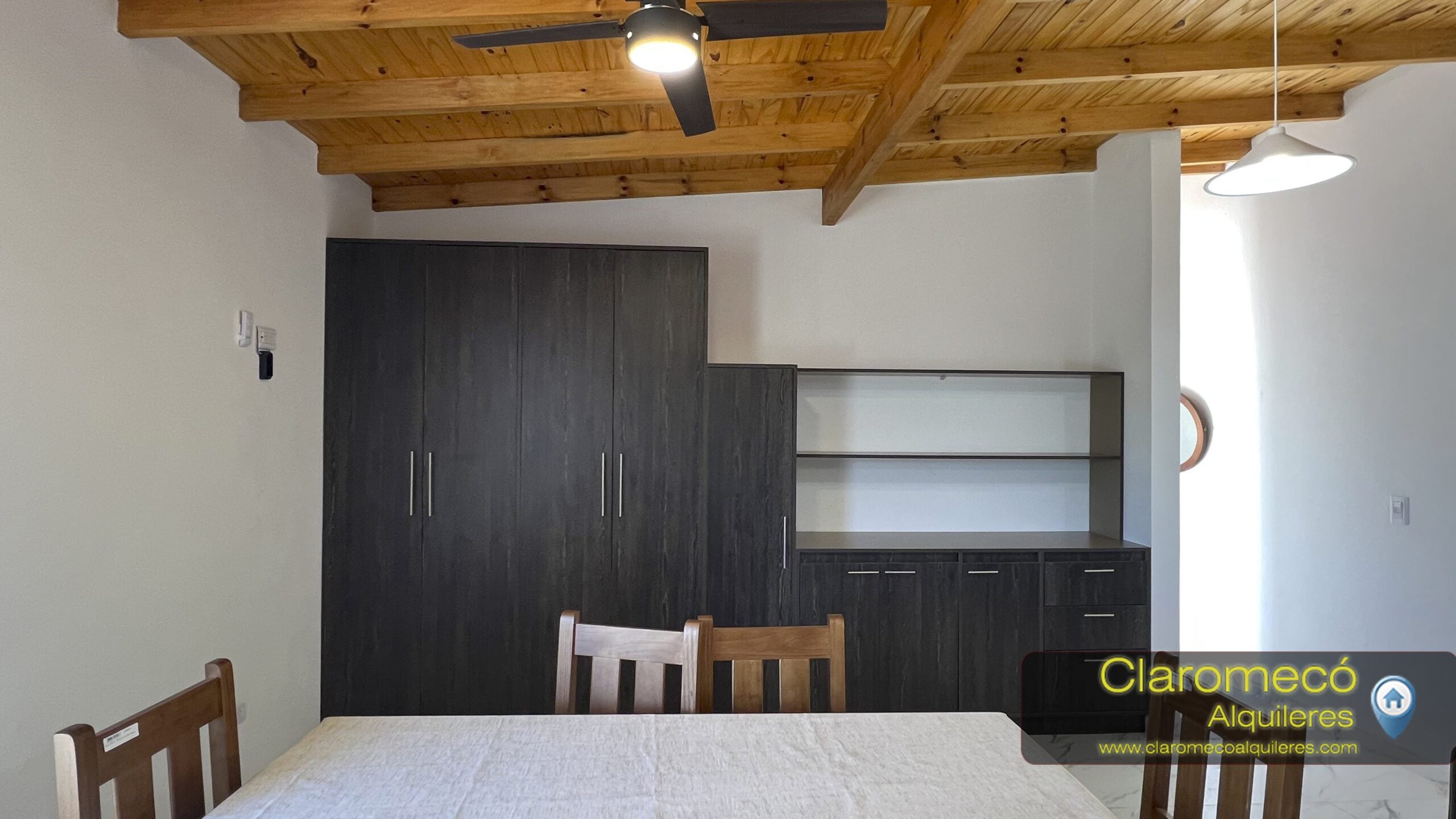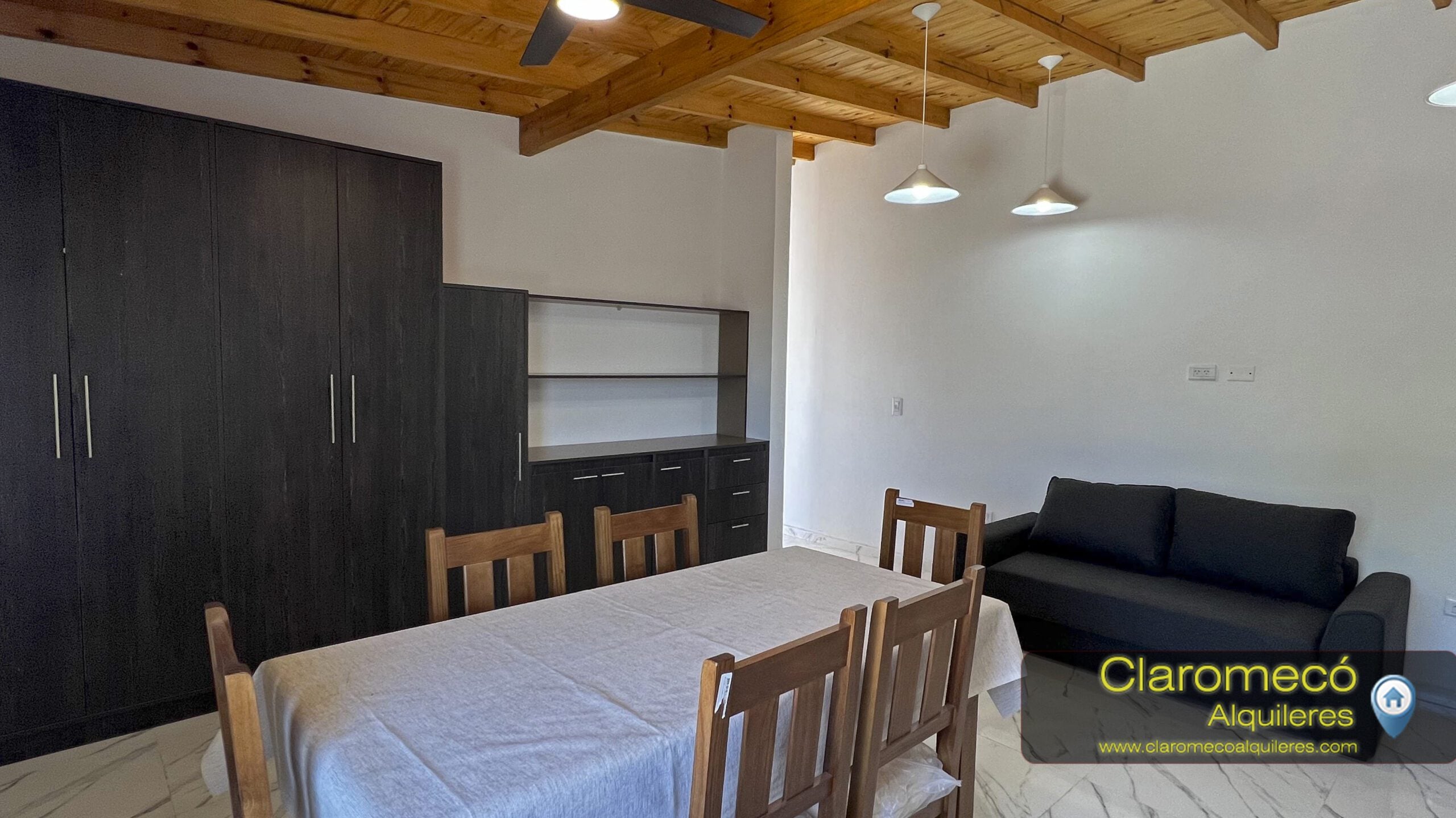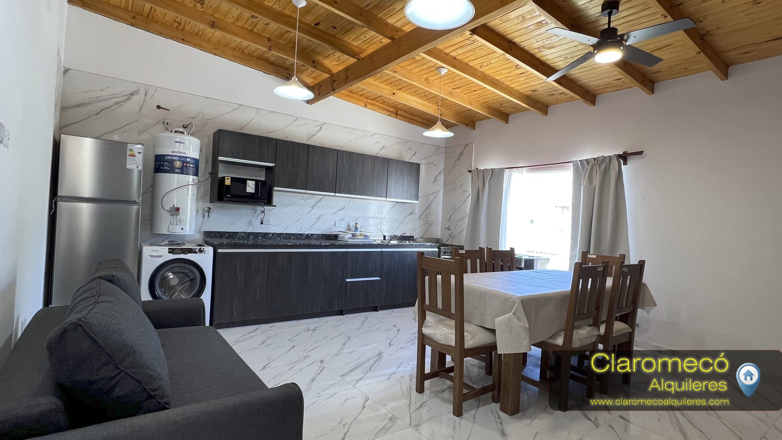 Se accede al mismo por una entrada lateral y escalera, se encuentra a tan solo una cuadra del centro comercial , y a cuatro cuadras del mar. Cuenta con living comedor con sofá cama de dos plazas, cocina, baño completo y una habitación con cama matrimonial con aire acondicionado. Además posee internet WiFi, microondas, dos ventiladores (de techo y de pie), heladera, lavarropas y vajilla. No posee entrada vehicular y el gas es de red. Cuenta con parrilla compartida.