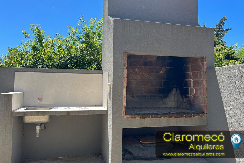 Además, cuenta con TV Led de 42″ con DirecTv, internet WiFi, heladera con freezer, microondas, cafetera y pava eléctricas, vajilla completa, lavarropas, alarma y tres ventiladores de techo (uno en cada ambiente). Posee patio cerrado con parrilla, y la entrada vehicular es descubierta. El gas es de garrafa.