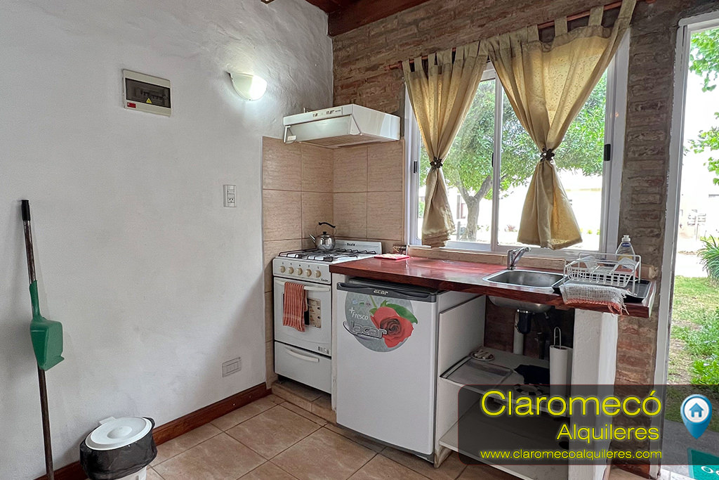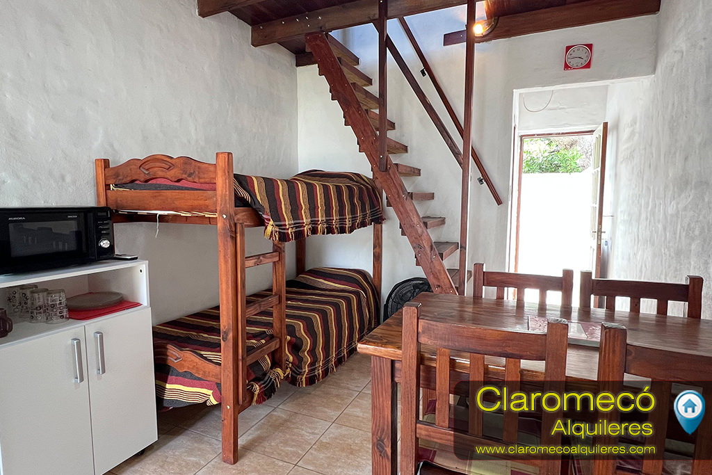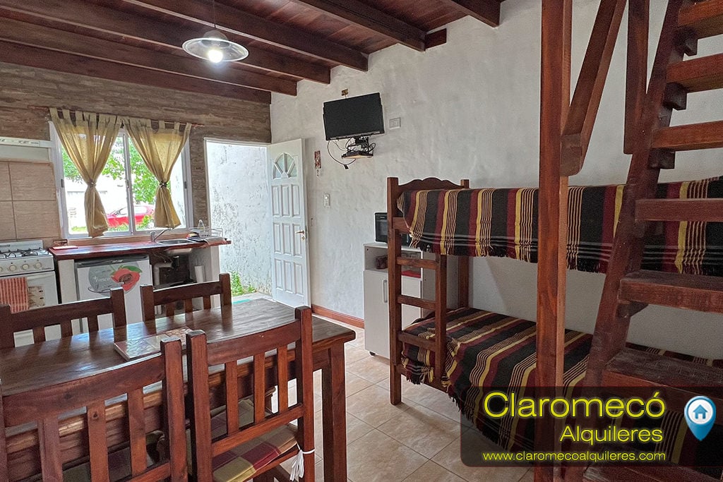 Cuenta con cocina-comedor con una cama cucheta y baño en planta baja, y una habitación con cama matrimonial en planta alta. Posee patio cerrado con parrilla y entrada vehicular descubierta.