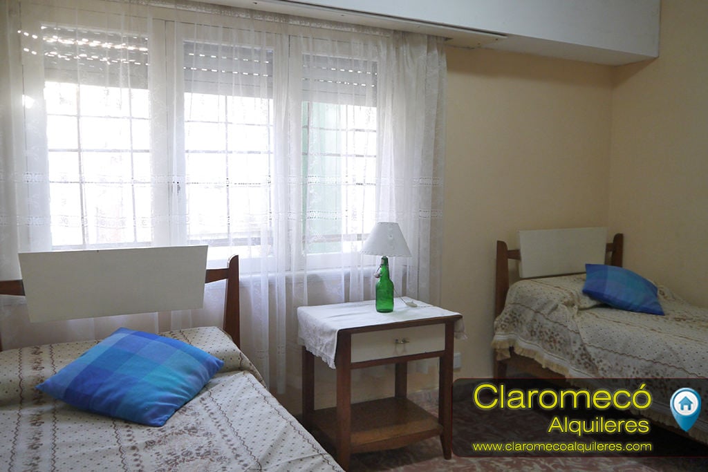En Claromeco, sobre calle 21, casi esquina 38, a solo 300 mts del mar, te ofrecemos un chalecito para 4 personas, dos habitaciones, una con cama matrimonial con colchón de alta densidad y otra con dos camas individuales, baño con ducha, living/comedor con un sofá/cama y cocina con horno y vajilla completa. Tiene entrada vehicular con porton y pequeño patio con parrilla.