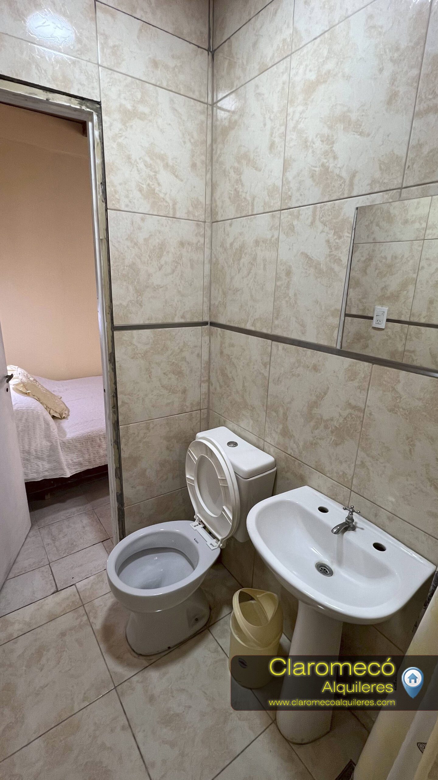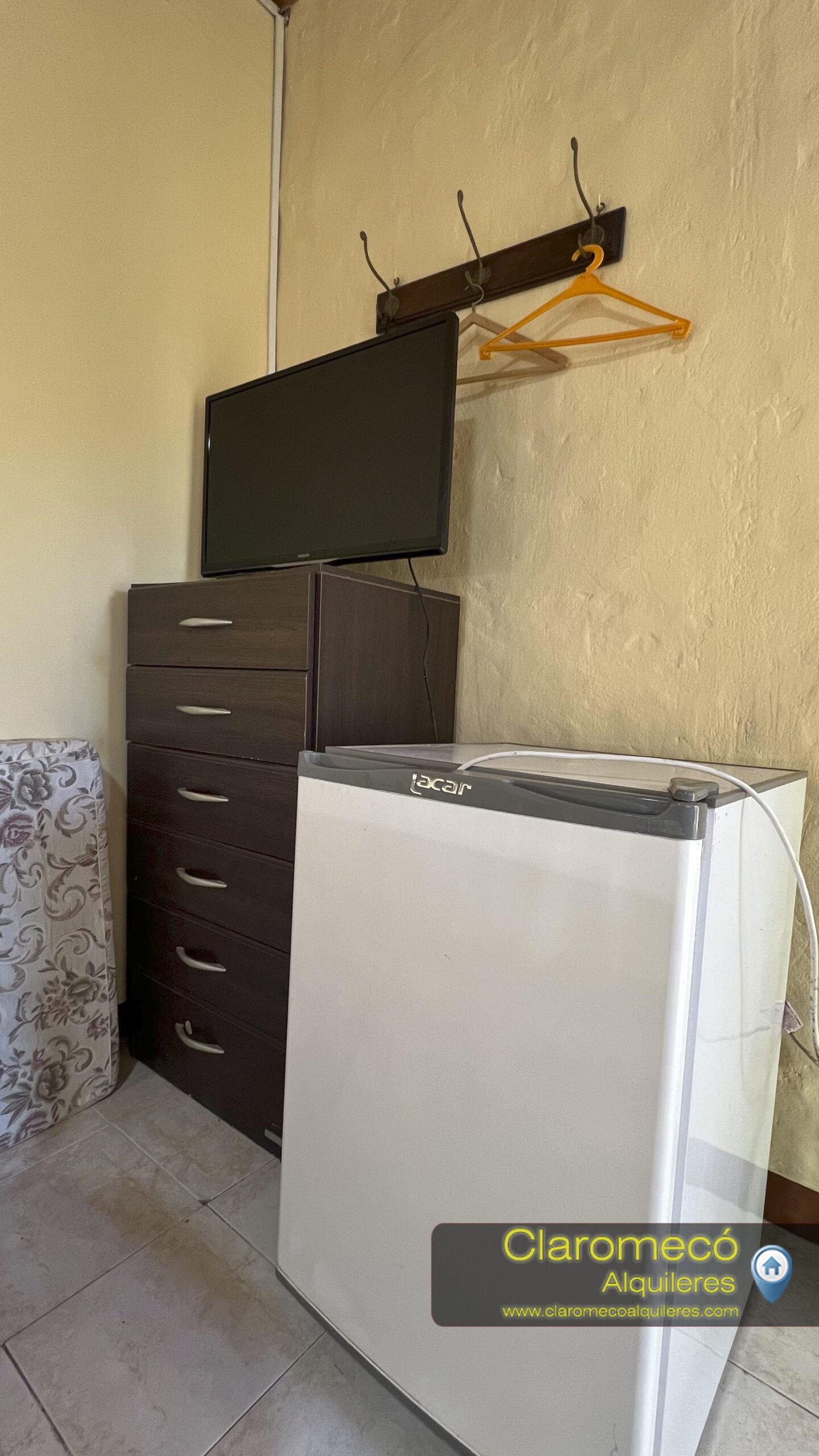El Monoambiente cuenta con: TV de 32” con señal por cable (Cablevisión), internet WiFi, heladera, anafe con dos hornallas, vajilla y termotanque. Dispone de un pequeño patio con parrilla y entrada vehicular descubierta (con plantas).