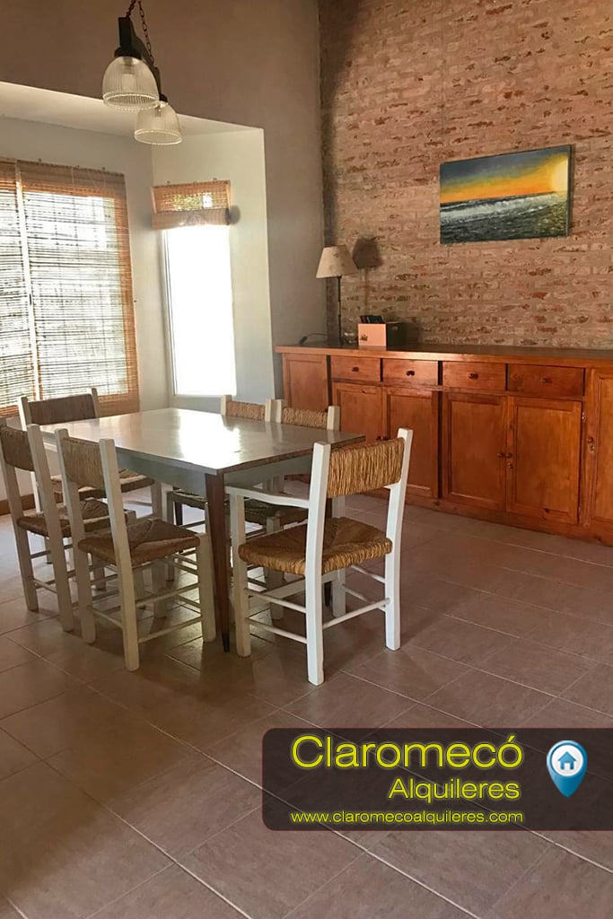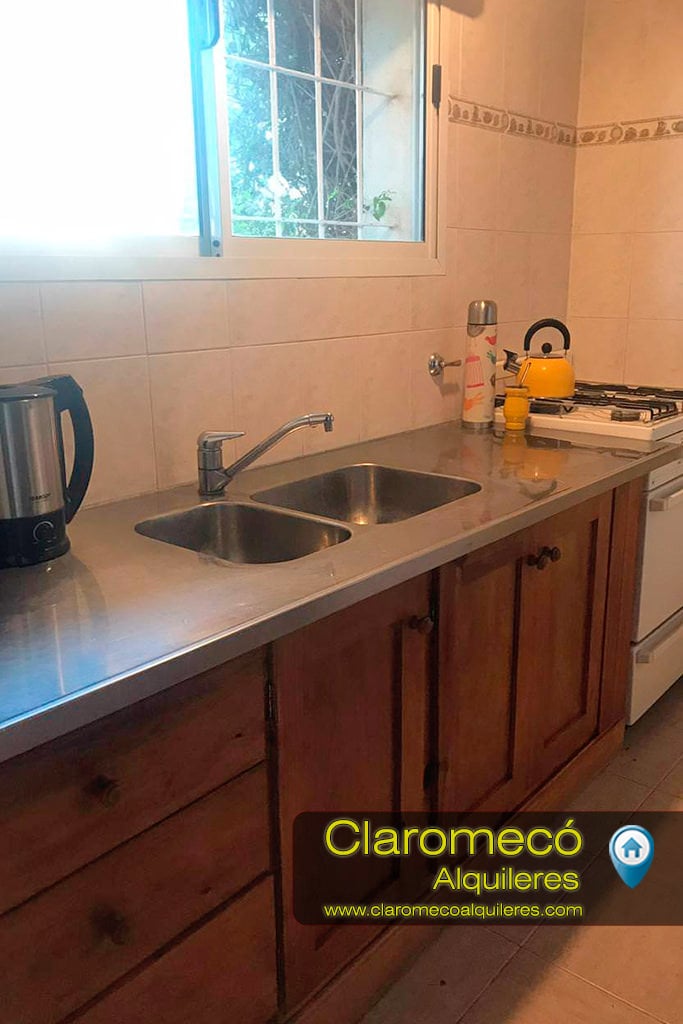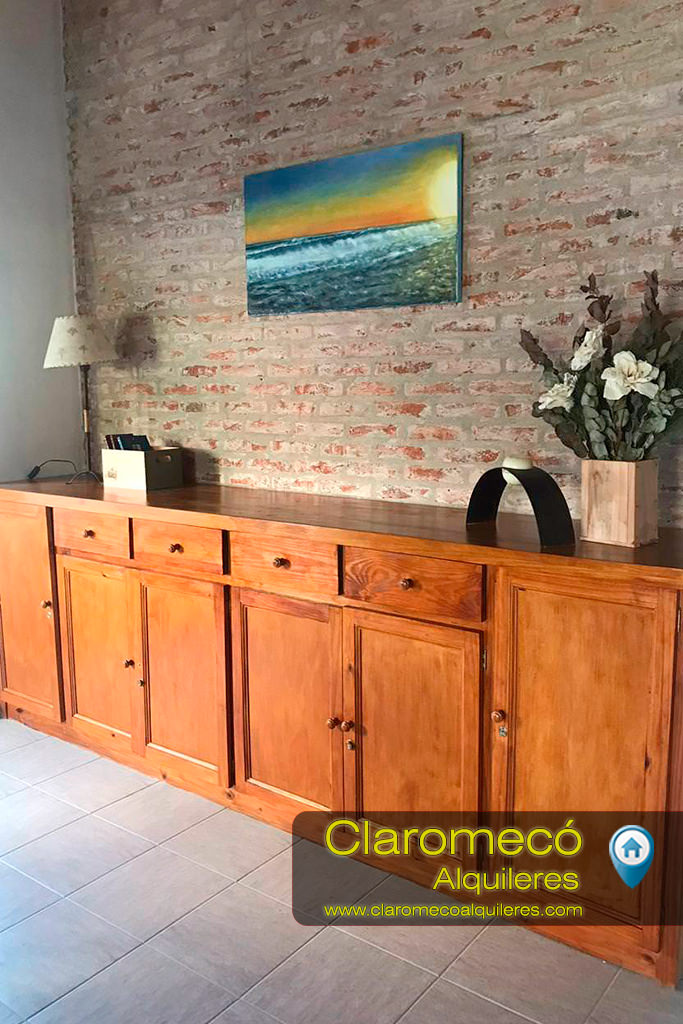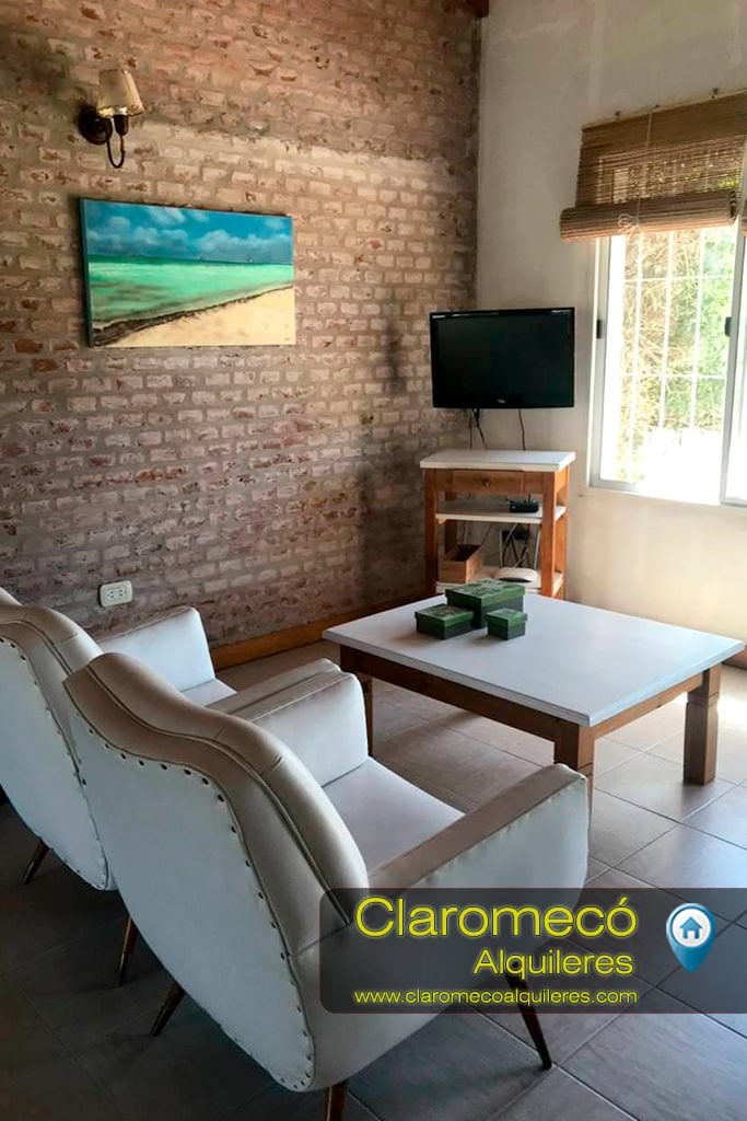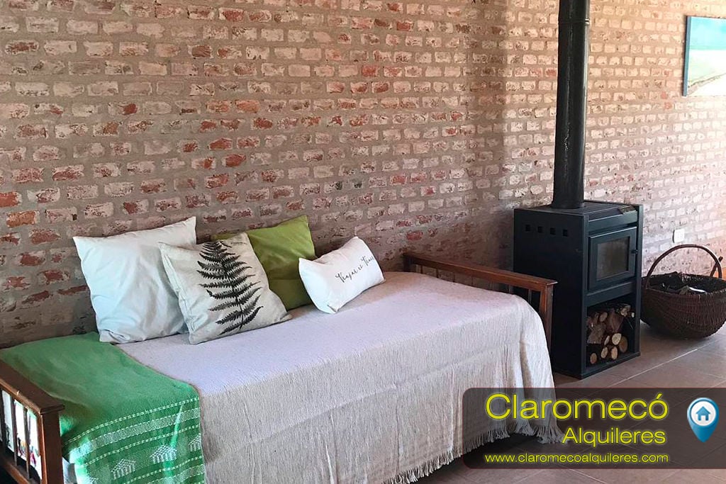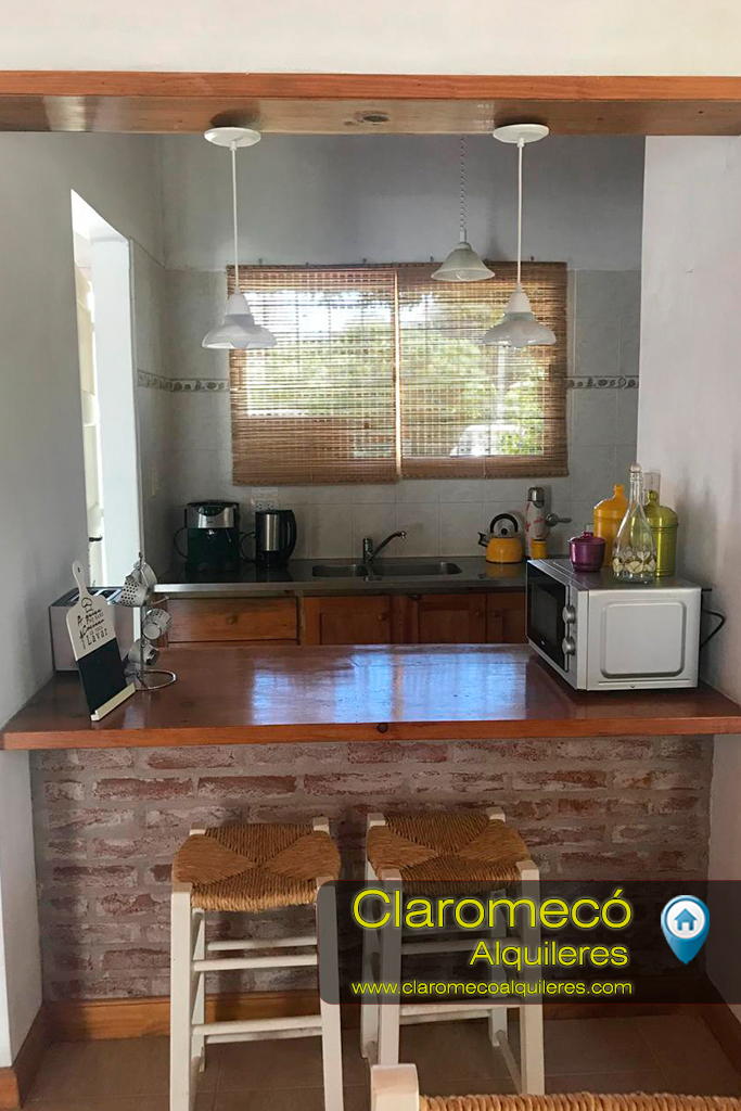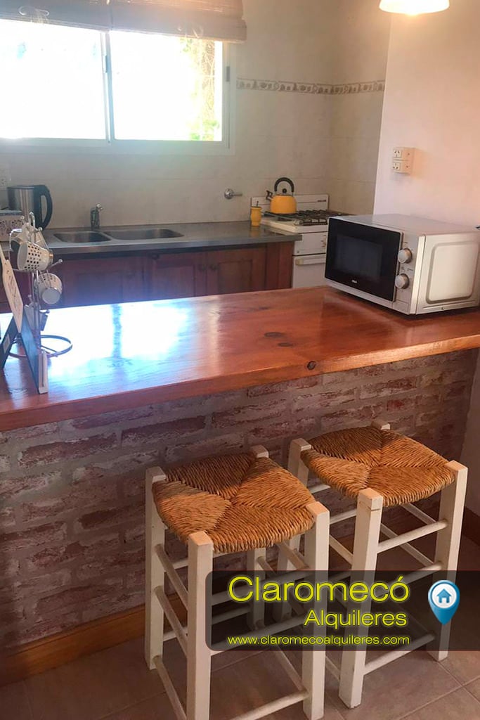 La misma cuenta con living-comedor con estufa a leña, barra desayunadora con banquetas, cocina completamente equipada, una cama marinera en el living y una habitación con cama matrimonial y aire acondicionado frio-calor.